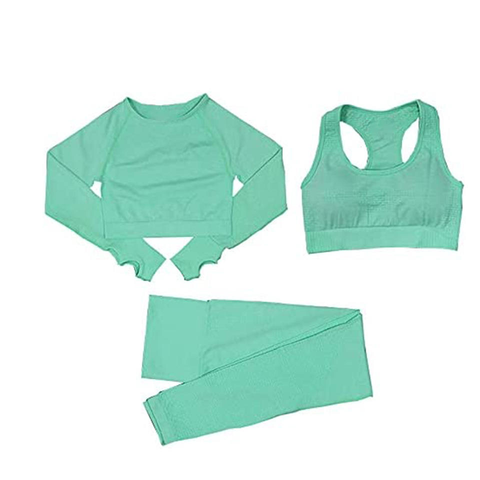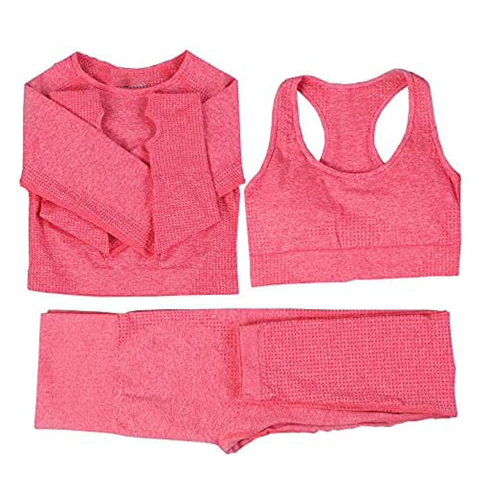 3 Piece Seamless Yoga Sets Womens Activewear Gym Tops Sports Bra Short Workout Fitness Gym Wear