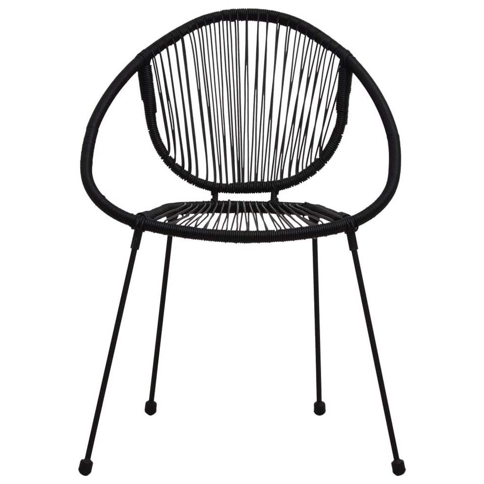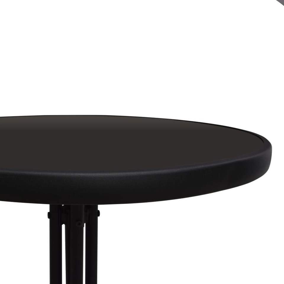 Ensemble bistrot empilable 3 pièces en rotin PVC noir, acier et verre pour mobilier de patio