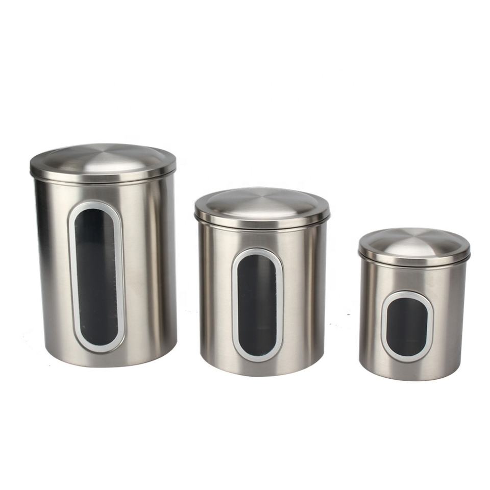 Ensemble de 3 boîtes empilables en acier inoxydable avec fenêtres transparentes