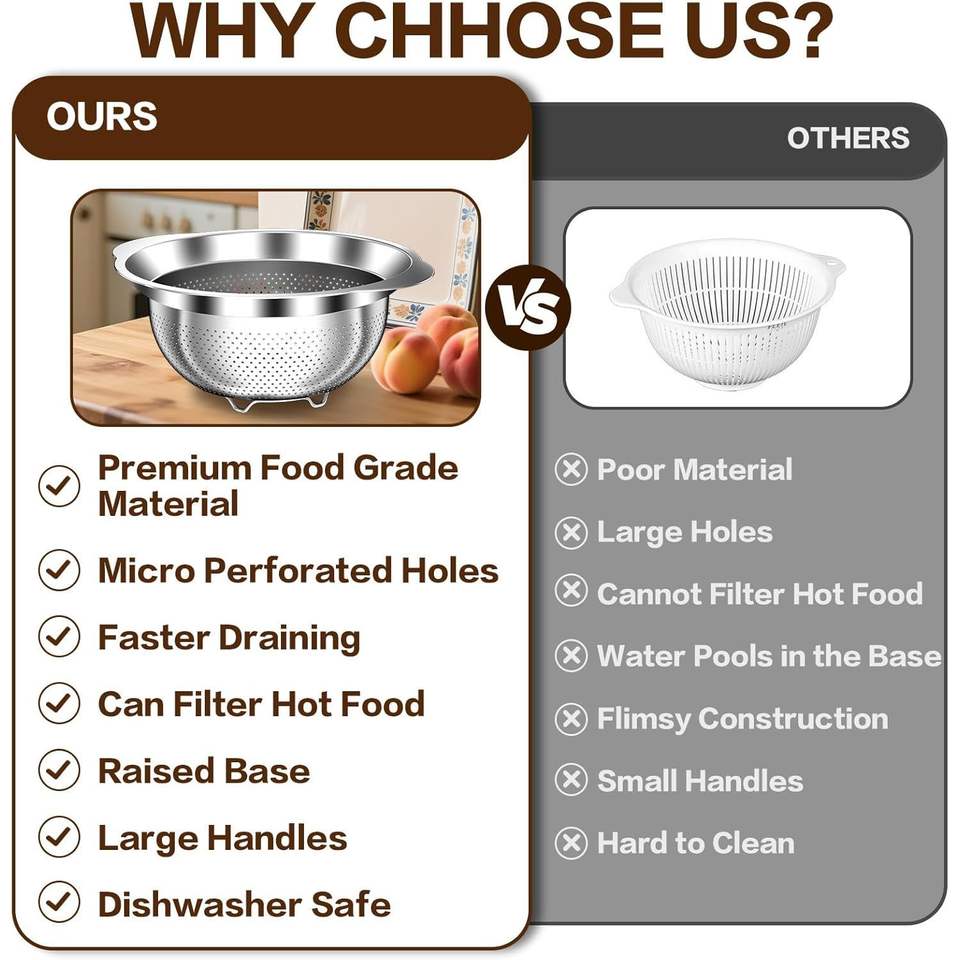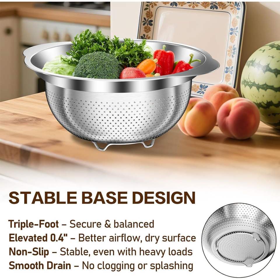 Ensemble de 3 passoires et égouttoirs de cuisine en acier inoxydable pour pâtes, spaghetti, fruits et légumes