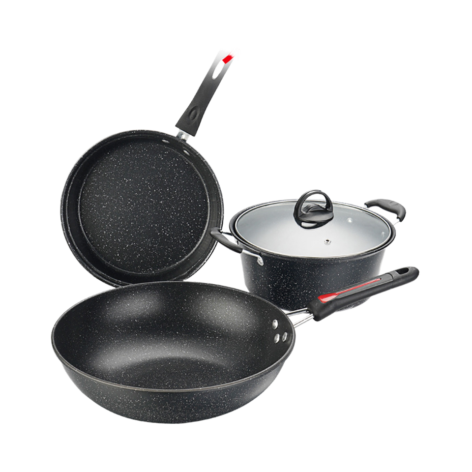 Ensemble de 3 casseroles et poêles antiadhésives Ensemble de casseroles et poêles en pierre antiadhésive Ensemble de cuisine