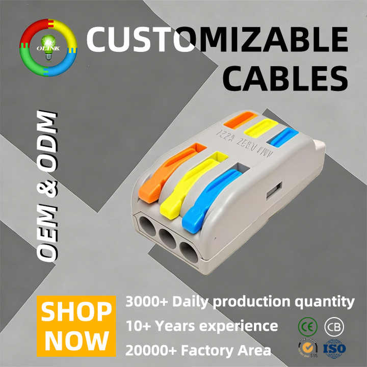 Connecteur de raccordement à levier 3 broches pour applications électriques, contacts en cuivre, femelle, 250V 32A, boîtier PA66/PC, connexions de fils