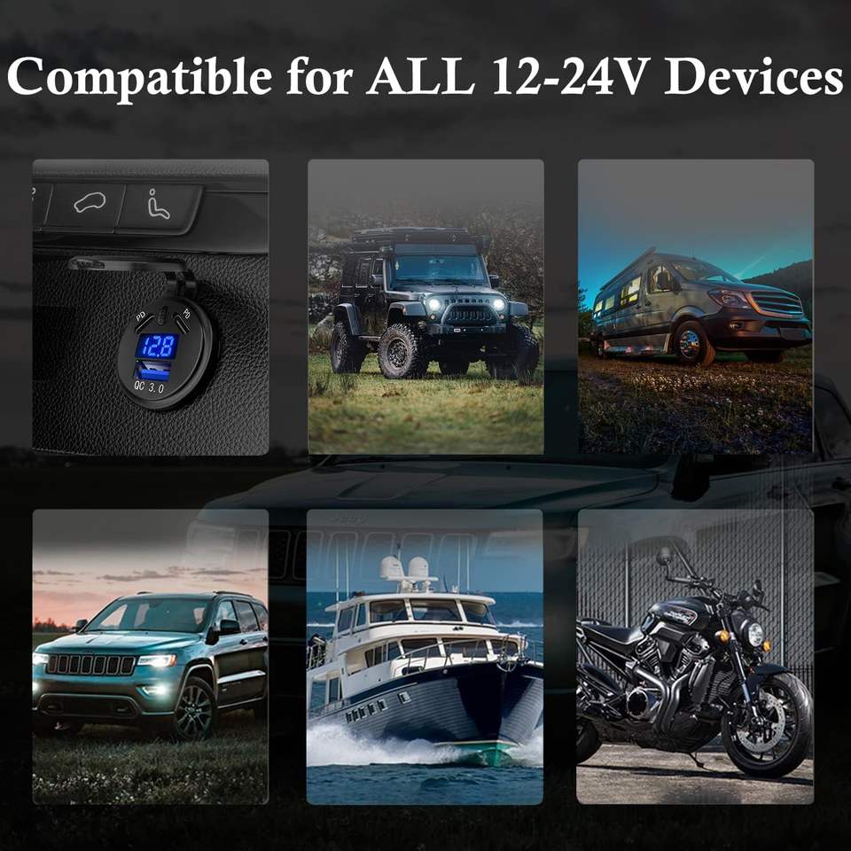 Prise chargeur de voiture 3 ports double 45W PD Type C & 18W QC 3.0 avec voltmètre et interrupteur à bouton, prise chargeur USB pour voiture 12V/24V