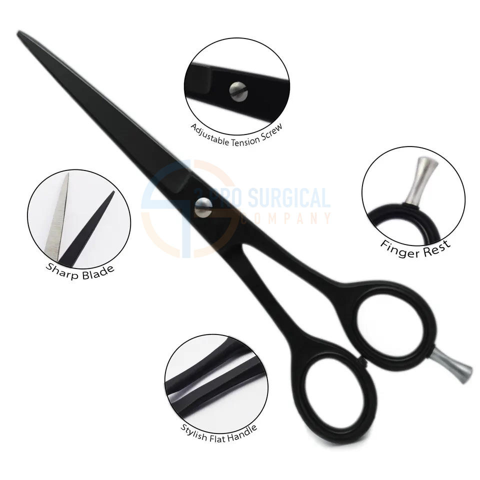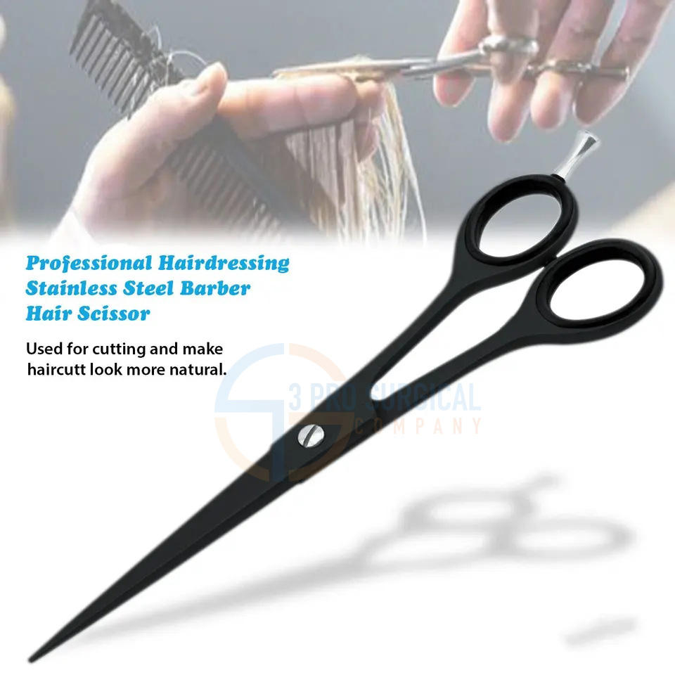 3 Ciseaux à cheveux en acier inoxydable de haute qualité pour barbiers Type droit avec pointe pointue pour couper les cheveux Manche en acier