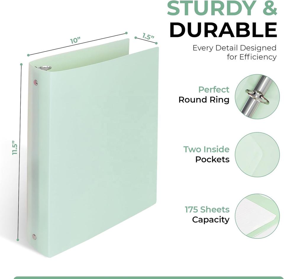 Classeur à 3 anneaux de 1,5 pouce, classeur flexible pastel avec poche, capacité de 280 feuilles, pour la maison et les fournitures scolaires
