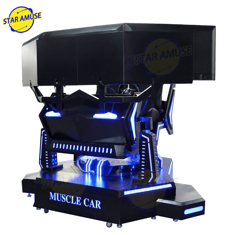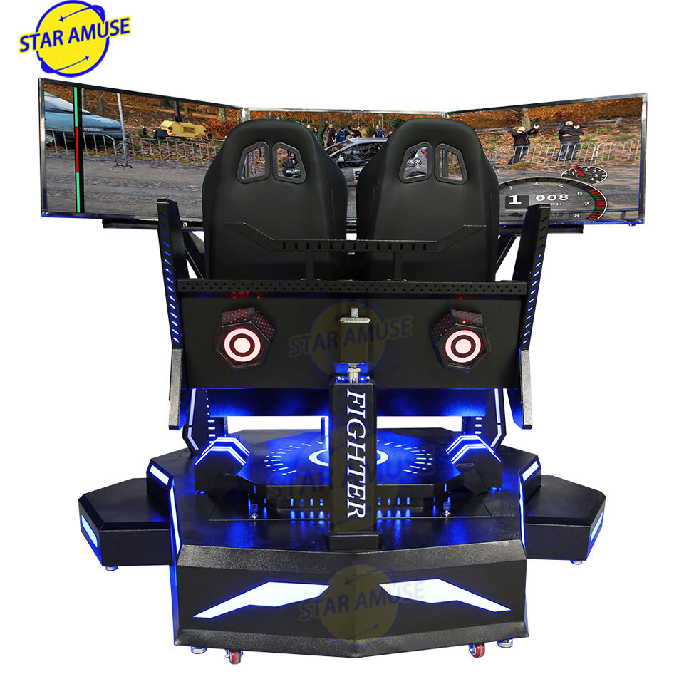 Machine de course VR 2 places à 3 écrans Simulateur de voiture 3D intérieur à trois axes avec volant en métal Simulateur de conduite de voiture de jeu