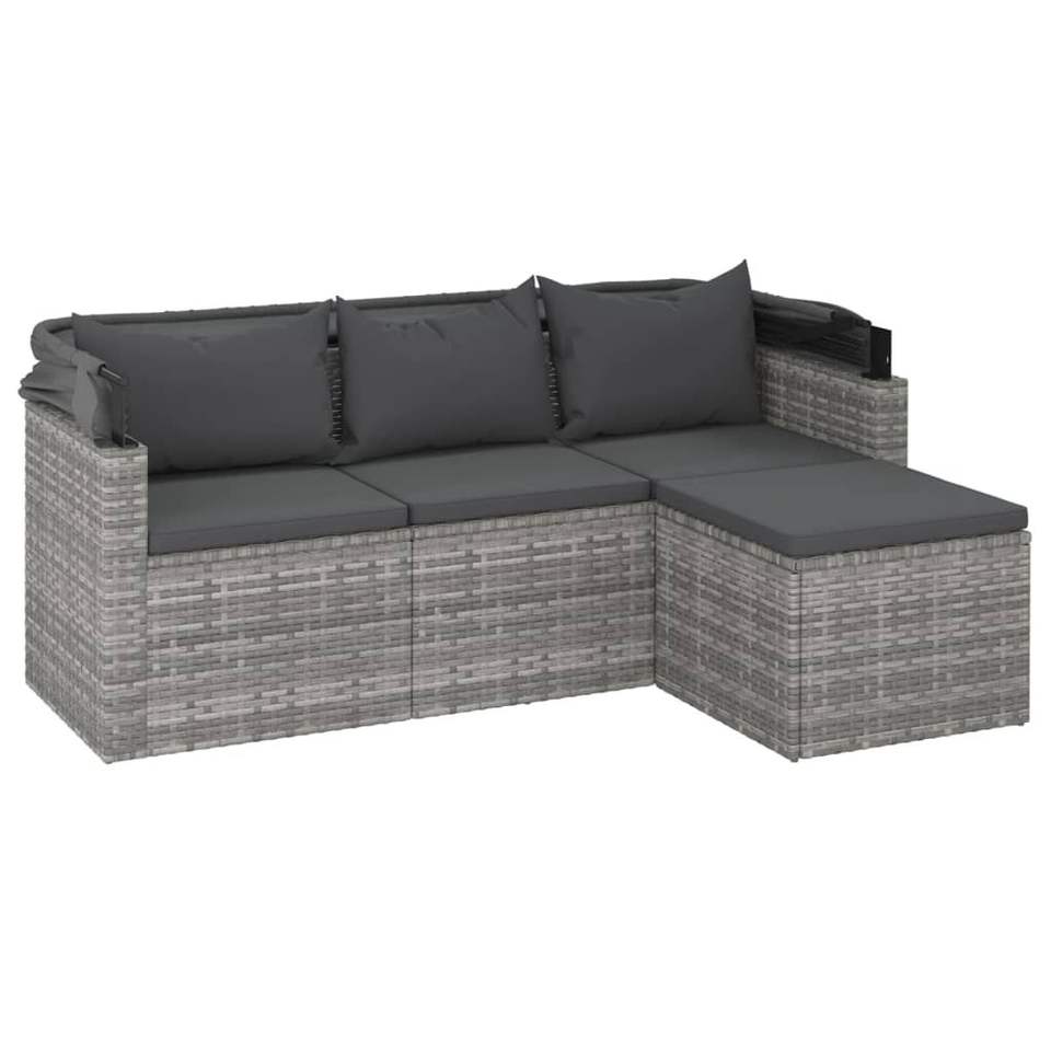 Canapé de jardin pliable 3 places en rotin PE gris, idéal pour une utilisation en extérieur