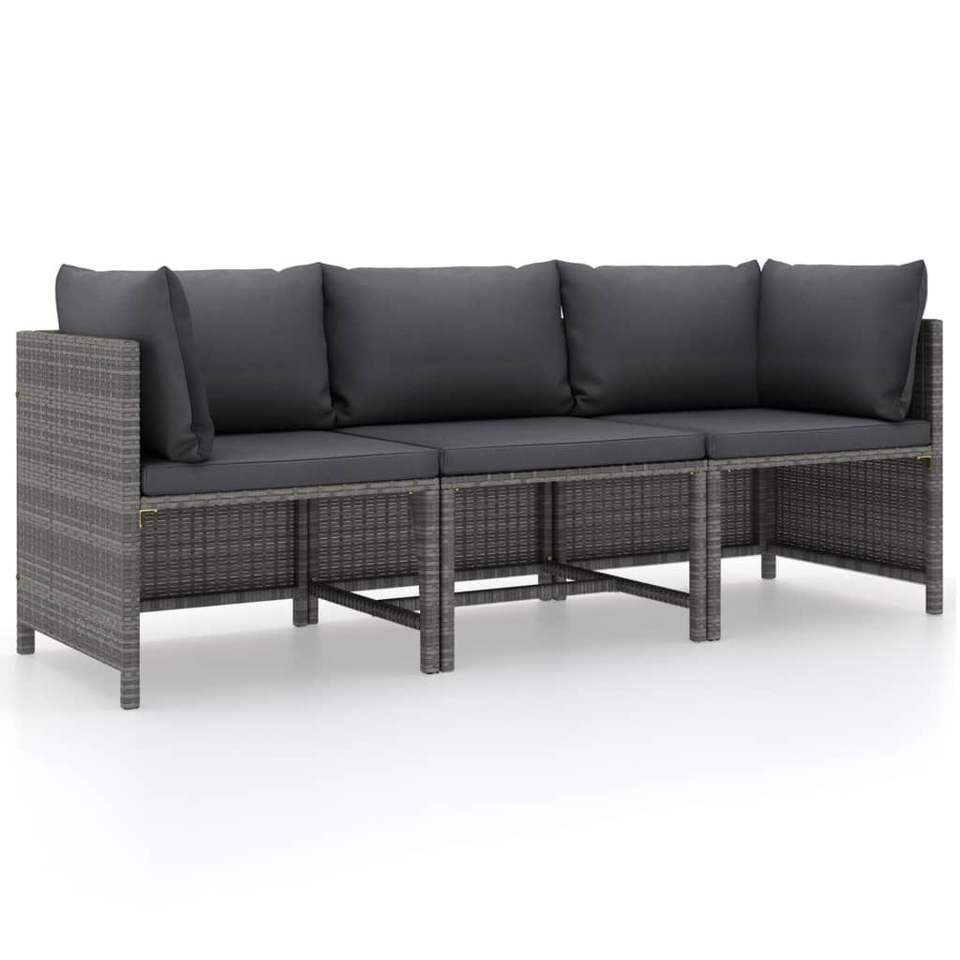 Canapé de jardin 3 places en rotin PE gris, acier et polyester, mobilier d'extérieur durable