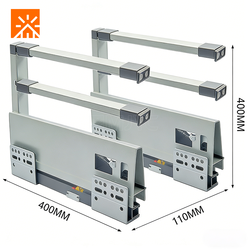 Glissière de tiroir à montage caché à 3 sections avec amortissement pour armoire, rideau, étagères