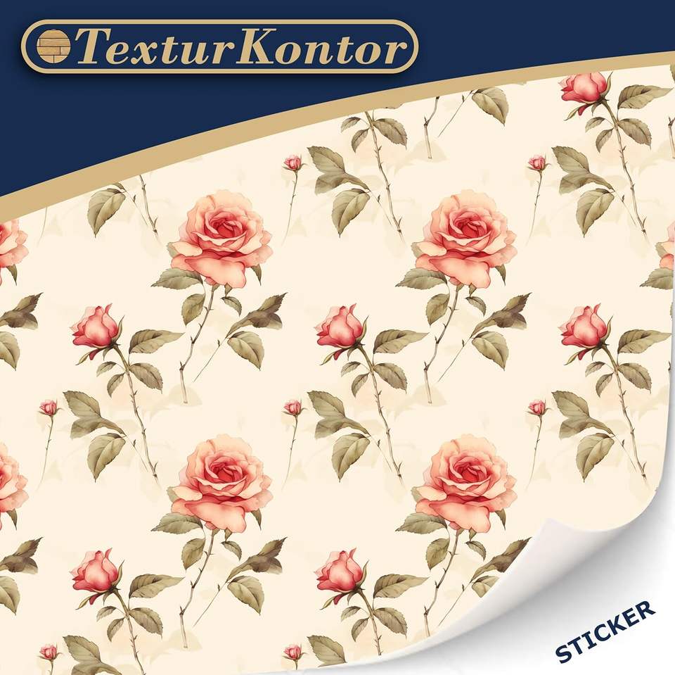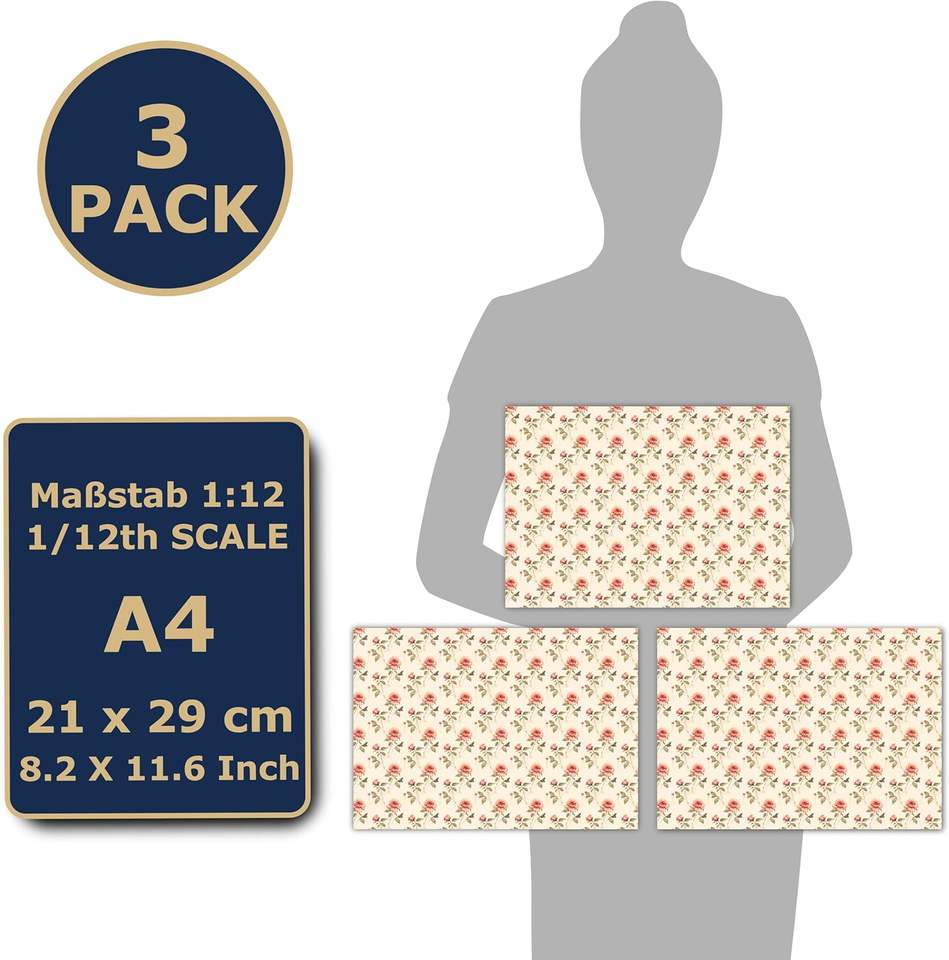 3 feuilles de papier peint PVC auto-adhésif pour maisons de poupées Échelle 1:12 Modern Art Deco Damask Design Living Room (Sepia Roses)