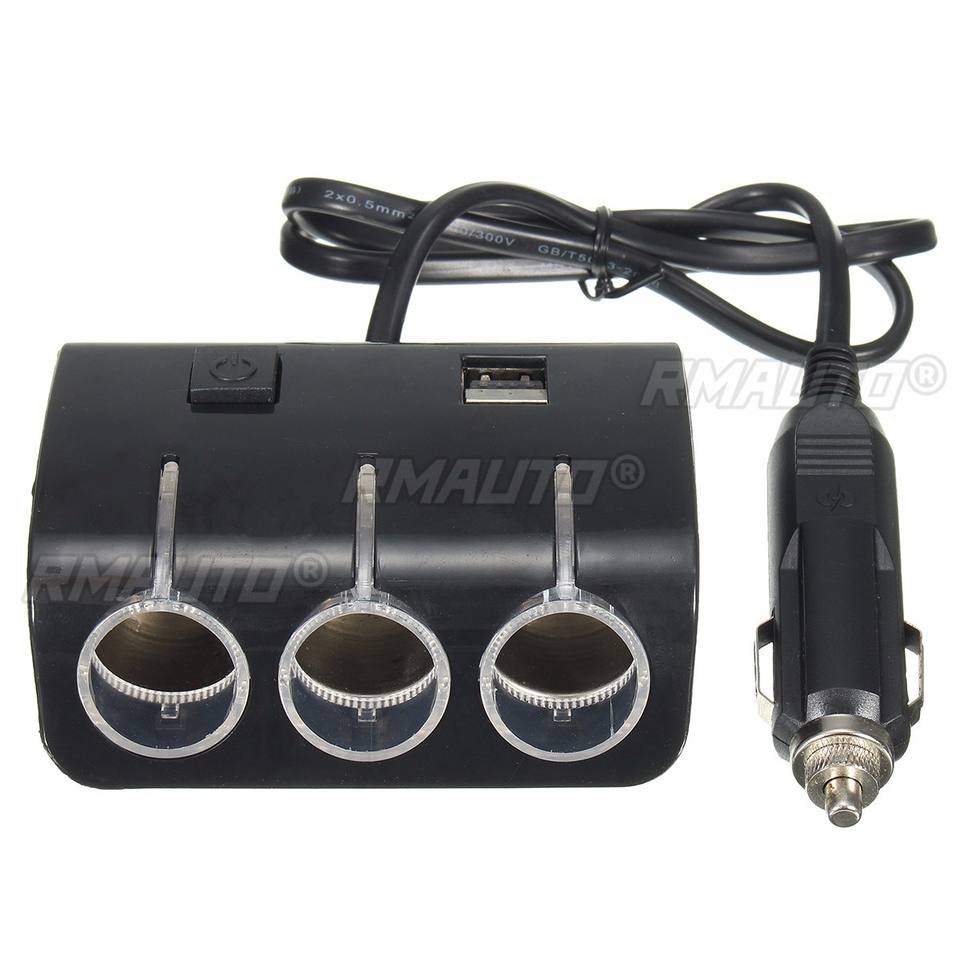 Adaptateur allume-cigare de voiture 3 prises 120W avec 2 ports USB et interrupteur, accessoire auto 12V 24V