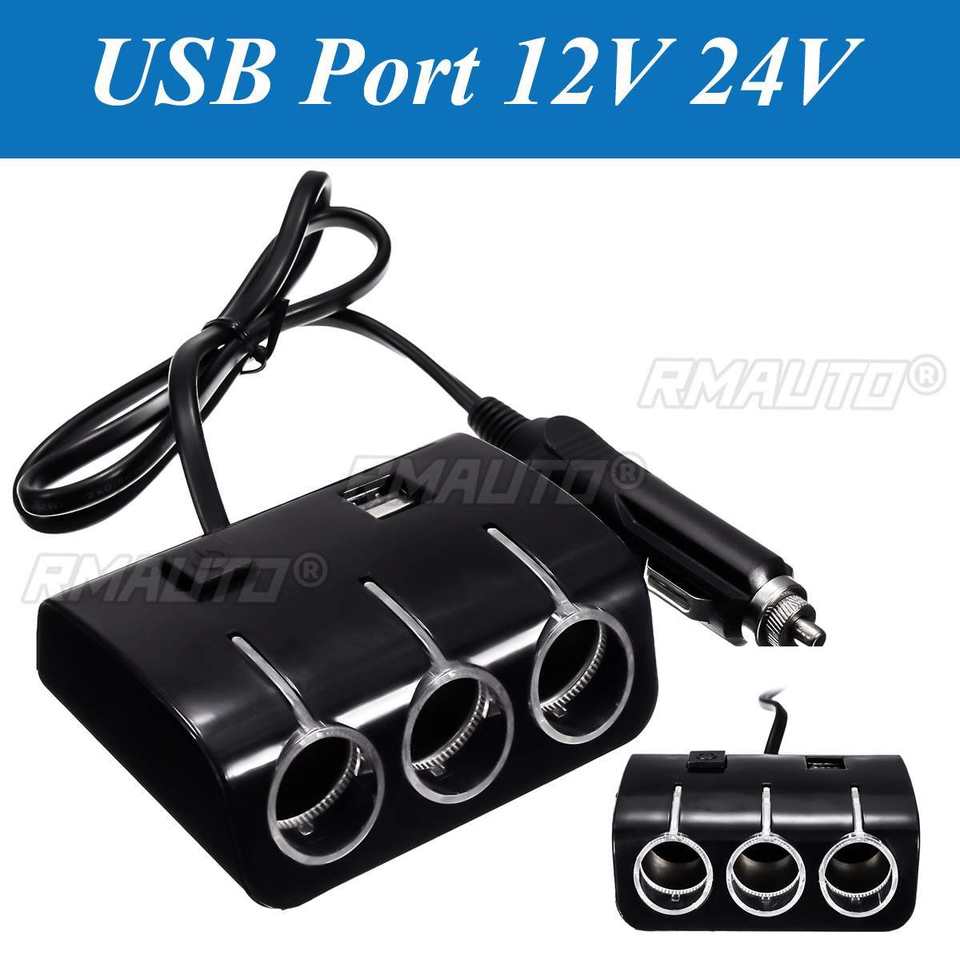 Adaptateur allume-cigare de voiture 3 prises 120W avec 2 ports USB et interrupteur, accessoire auto 12V 24V