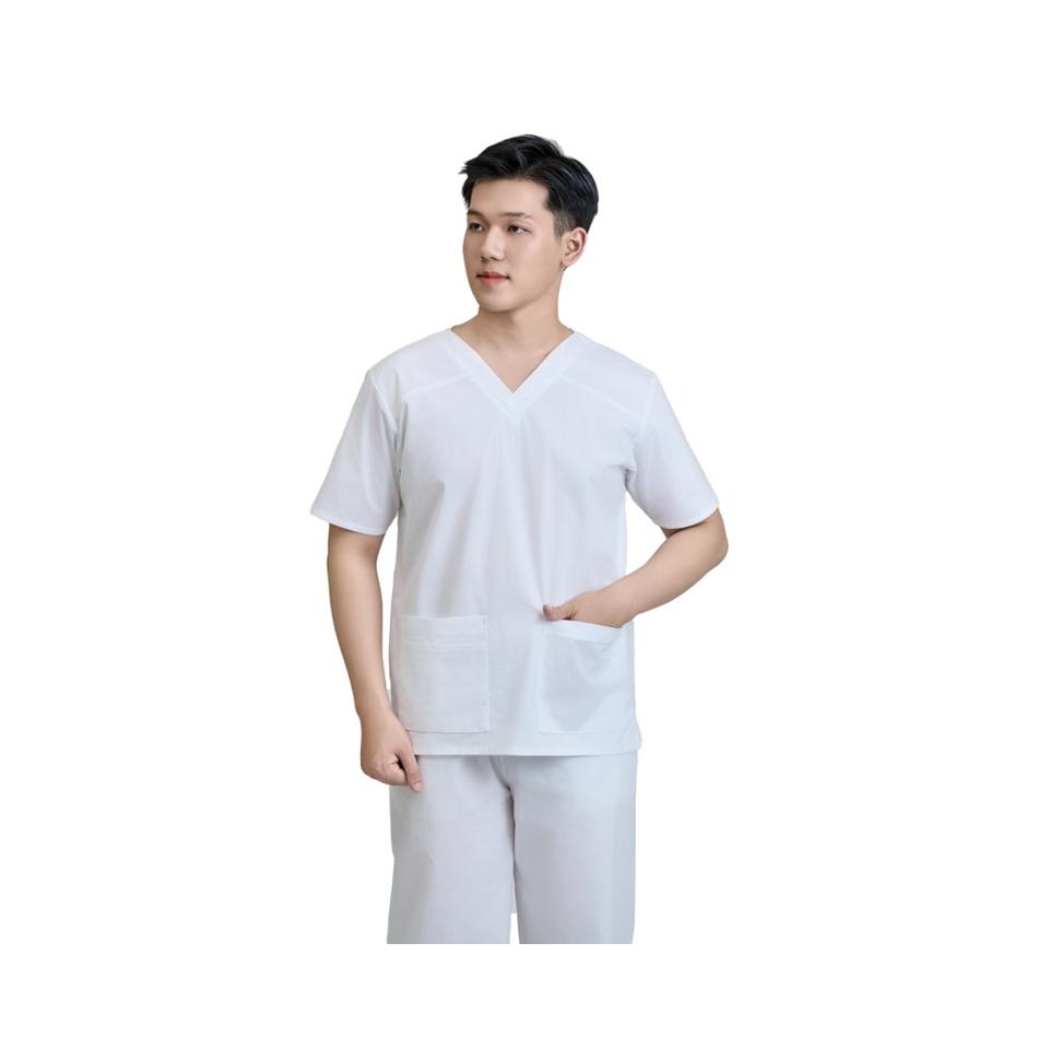 Ensemble de blouses médicales unisexes FMF fabriqué au Vietnam en tissu WFX-CVC avec 3% de spandex, détection des aiguilles, 52% de coton, 45% de polyester