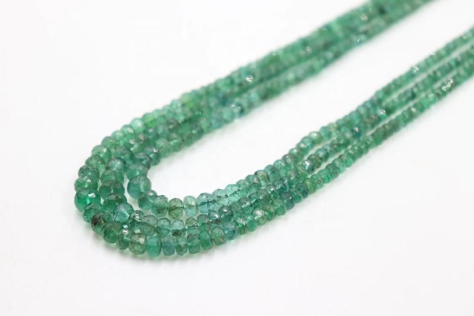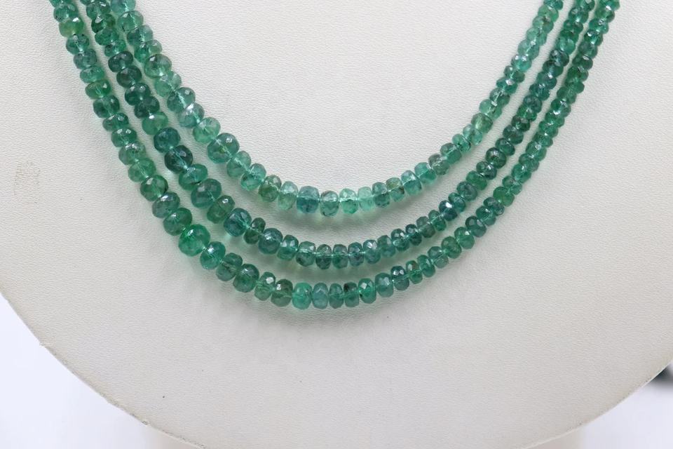 Name:3 Strand of Natural Zambian Emerald Faceted Rondelle Necklace