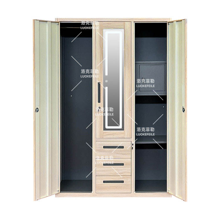 Nom du produit:Armoire en acier imitation bois à 3 portes avec miroir et éclairage LED
