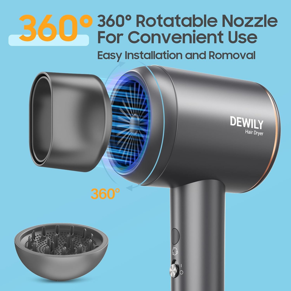 Sèche-cheveux portable à 3 températures et 3 vitesses avec fonction ionique en plastique pour hôtel et usage domestique