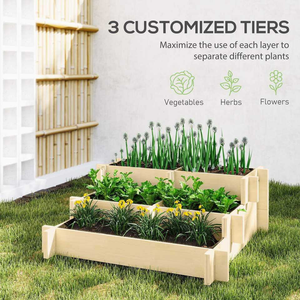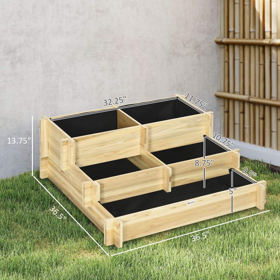 Jardinière surélevée à 3 niveaux en bois avec tissu drainant l'eau pour potager, légumes, herbes et fleurs