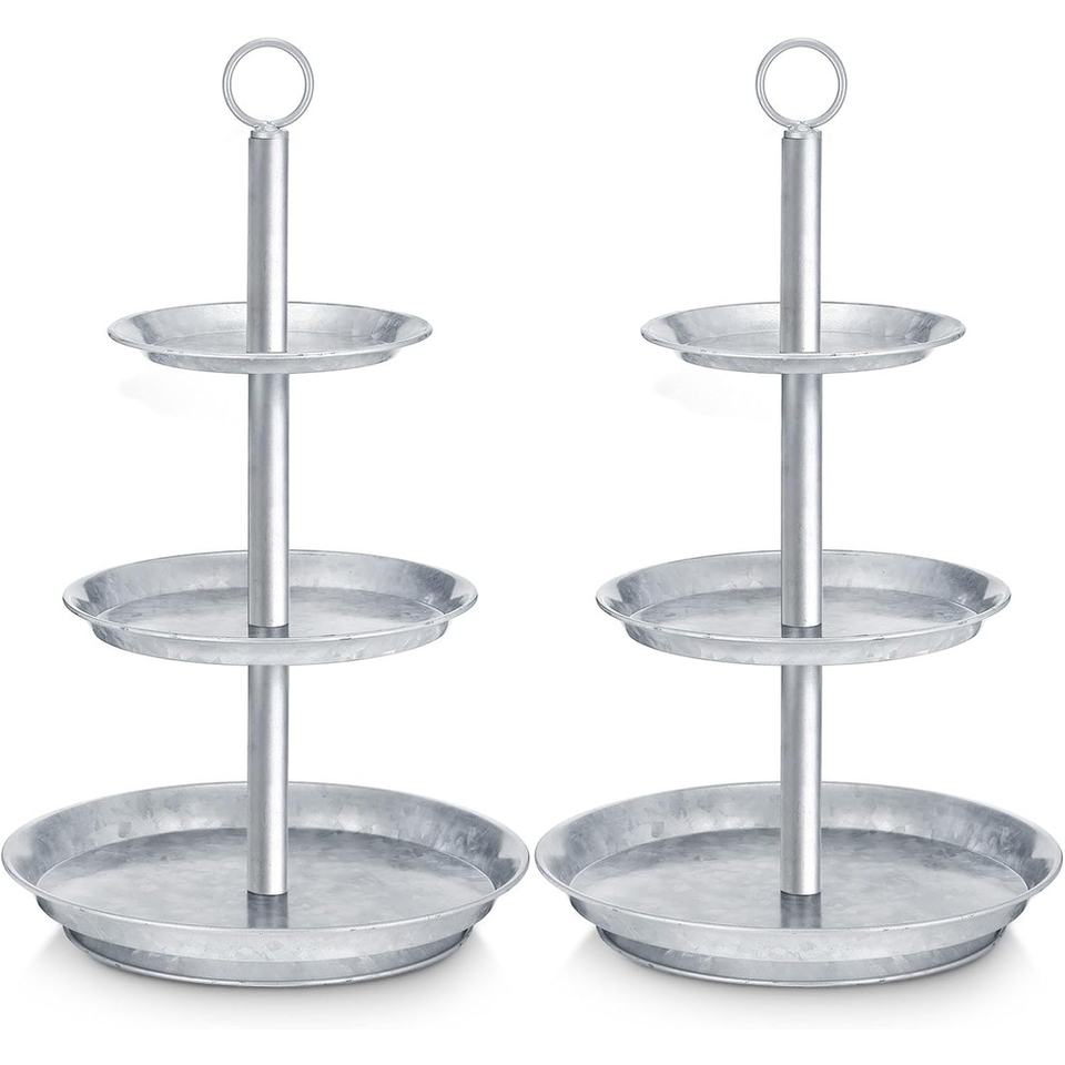 Support à gâteau en métal galvanisé à 3 niveaux pour mariages, fêtes, présentations de desserts, haute qualité, taille et couleur personnalisables, durable et élégant