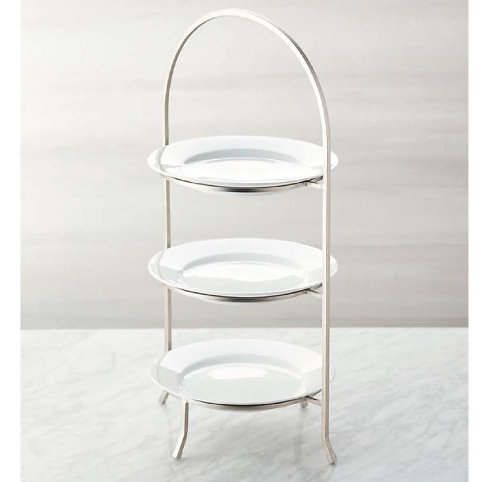 Support d'assiette pour ustensiles de cuisine à 3 niveaux Design simple Support d'assiette plaqué or pour le stockage Affichage de table OEM disponible