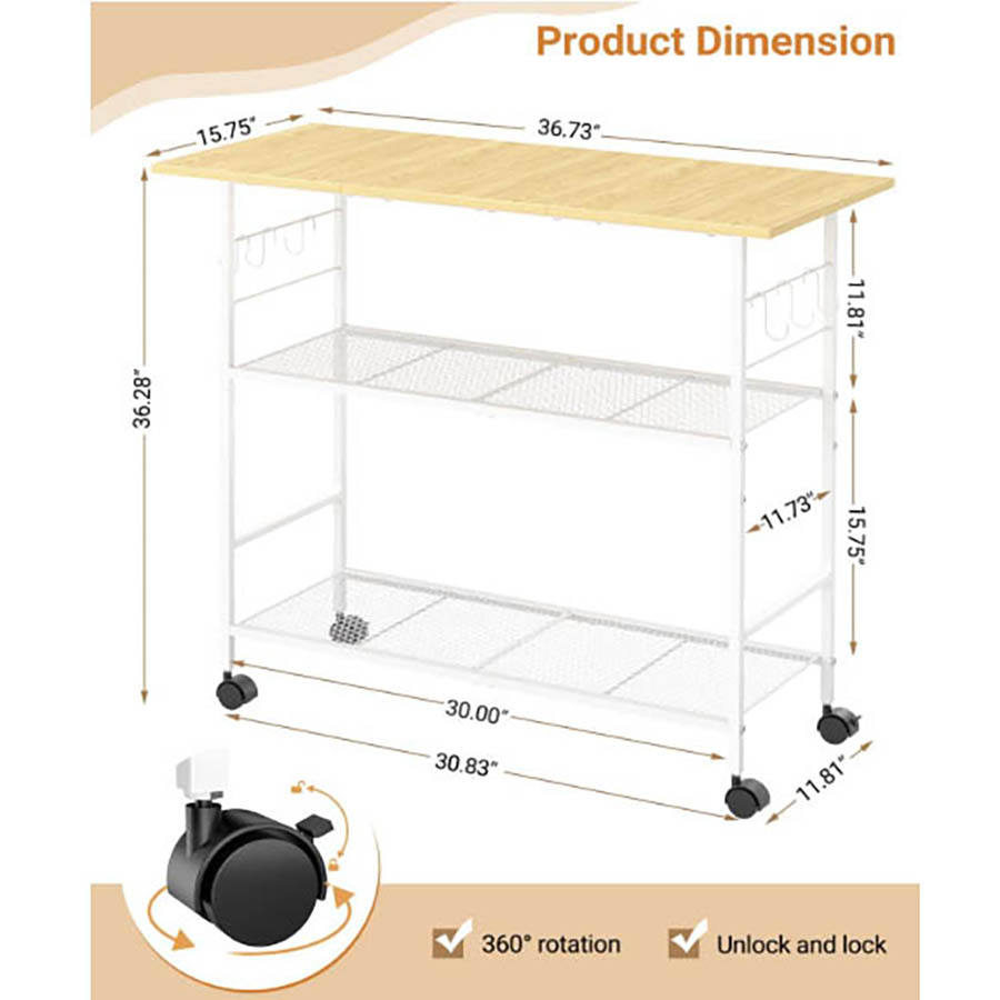 Îlot de cuisine moderne à 3 niveaux avec rangement, construction en métal et MDF, installation facile