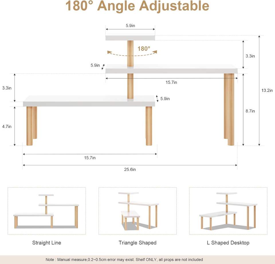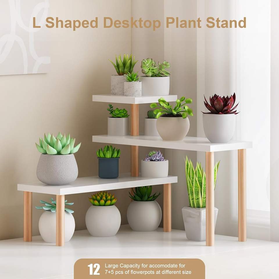 3-Tier White Wood Desktop Plant Stand with Adjustable Shelves