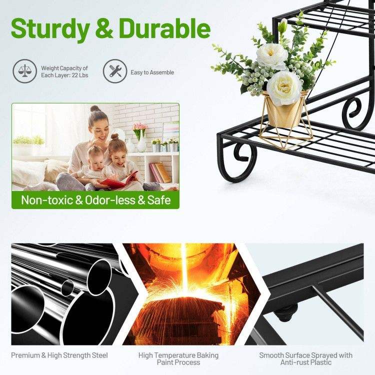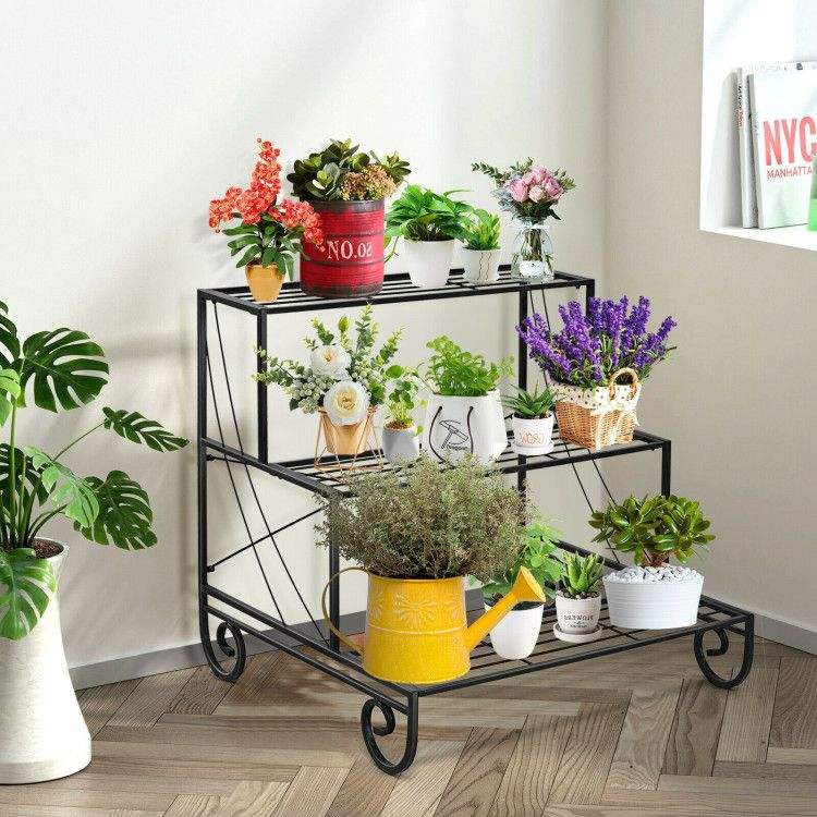 3-Tier Outdoor Metal Garden Planter Holder Shelf Elegant Garden Ornaments