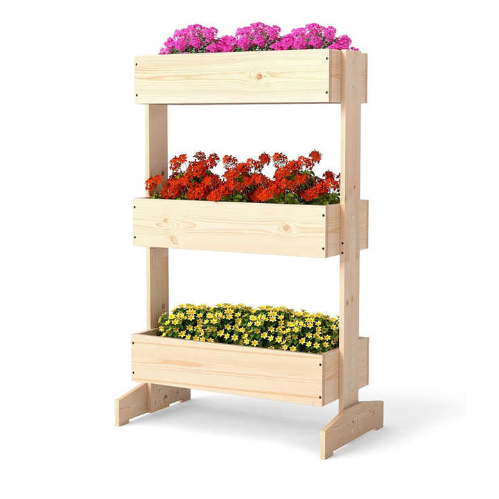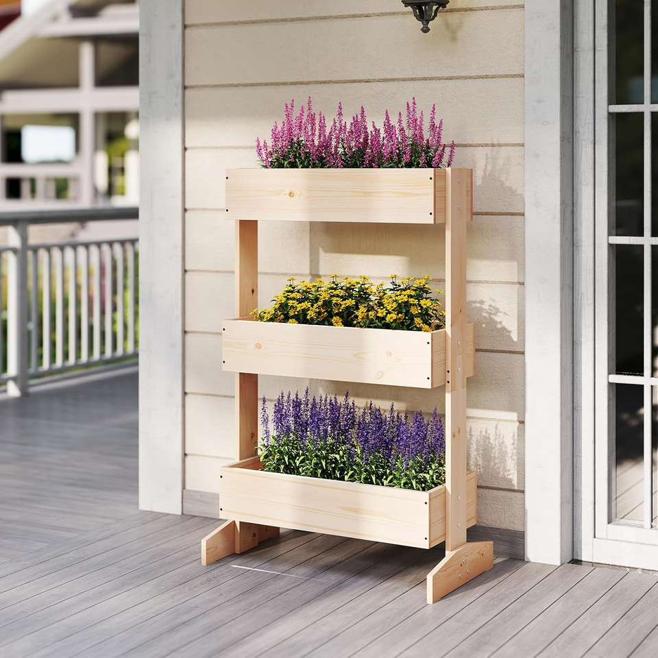 Jardinière Verticale Carrée à 3 Niveaux, 3 Boîtes à Fleurs en Bois, Autoportante, Écologique, Durable, pour Jardin Intérieur ou Extérieur