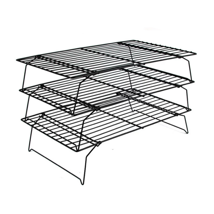 Supports de refroidissement empilables à 3 niveaux en acier au carbone antiadhésif pour gâteaux, biscuits, pain avec pieds pliables, résistants au four, accessoires de cuisson