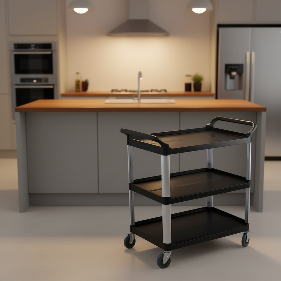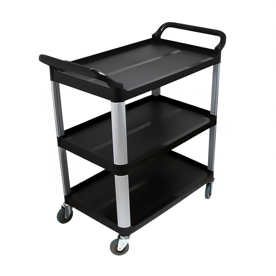 Chariot de cuisine à 3 niveaux en acier inoxydable noir avec roues verrouillables pour le service et le rangement