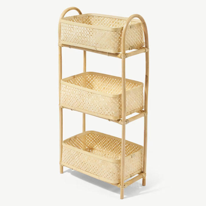Panier de rangement à 3 niveaux, panier en rotin et en bambou naturel, vente en gros, fabriqué au Vietnam