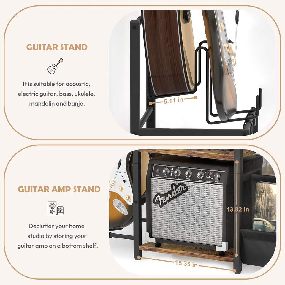 Stockage de disques vinyles à 3 niveaux pour 200 albums, support d'ampli basse pour guitare électrique acoustique, support de tourne-disque et table d'amplificateur de haut-parleur