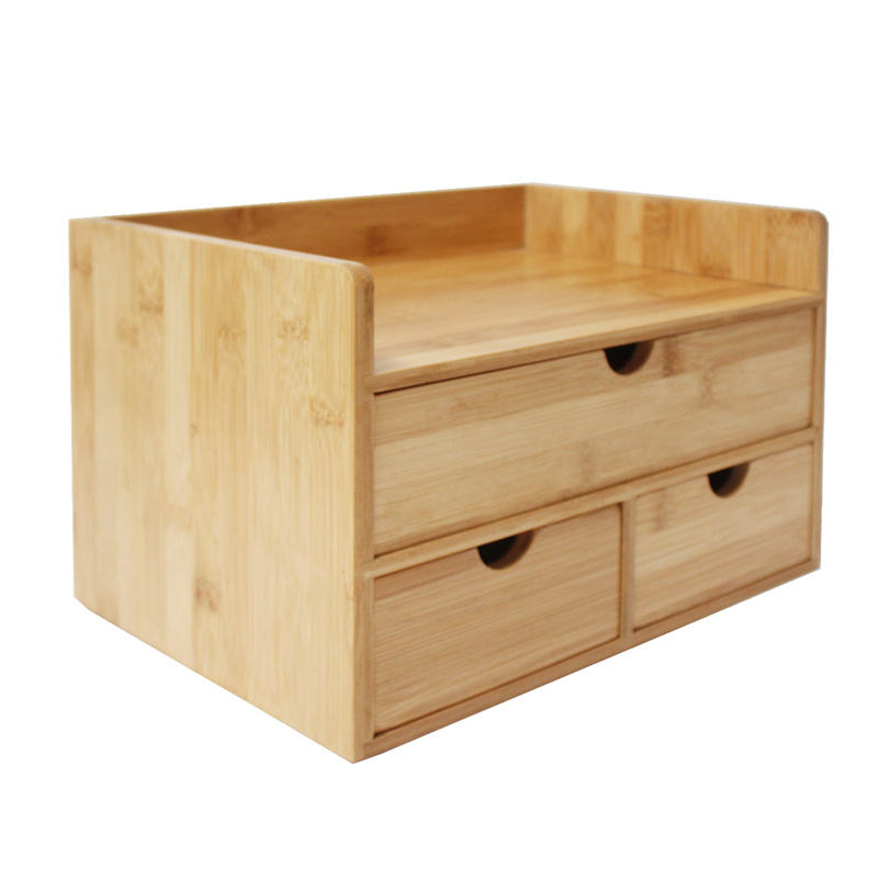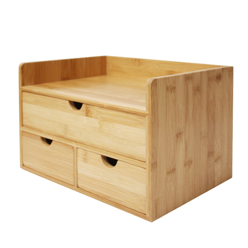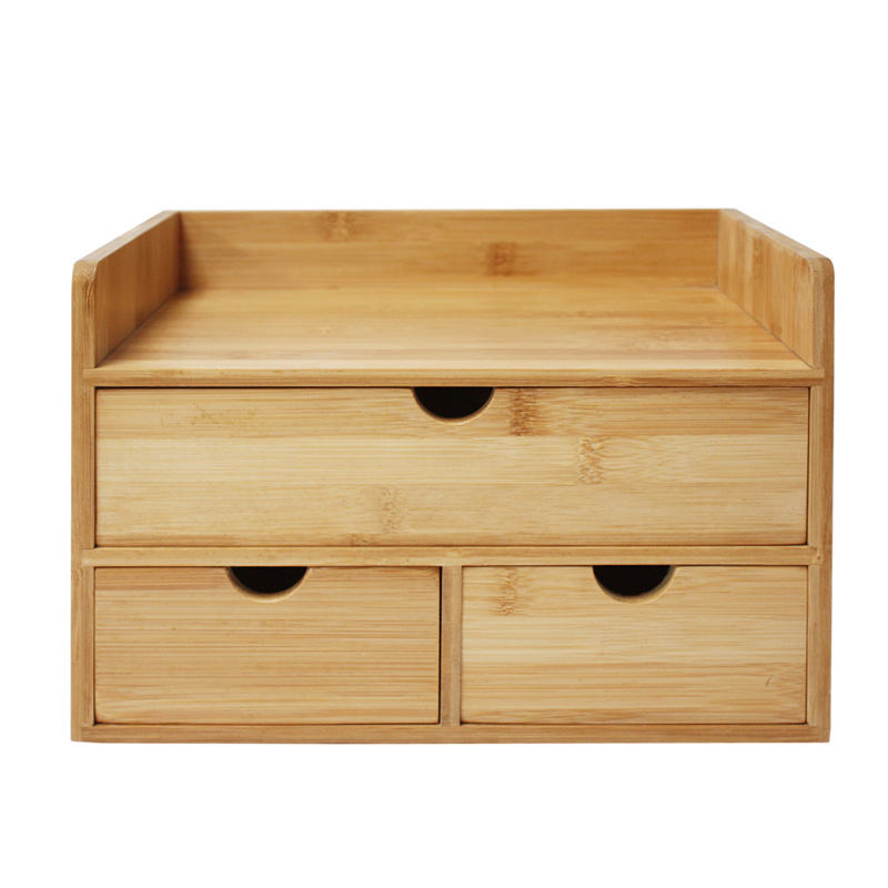Organisateur de dossiers de bureau en bois à 3 niveaux Accessoires esthétiques avec tiroir coulissant