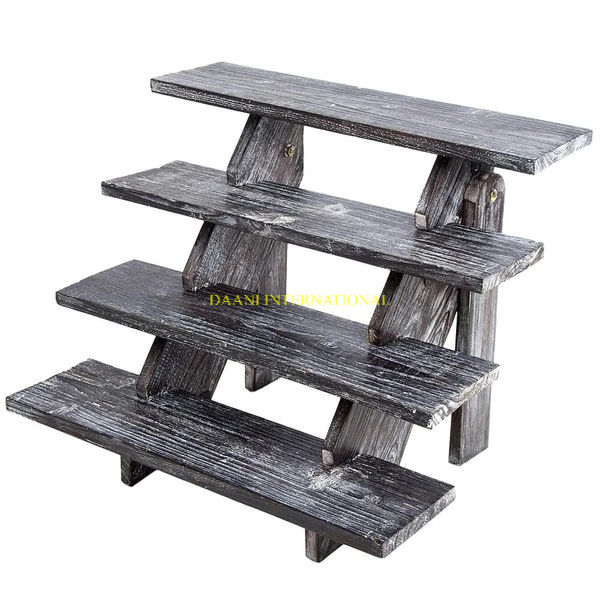 Étagère en bois à 3 niveaux avec cadre en métal noir Présentoir de boulangerie rustique Organisateur pour table de mariage et de fête