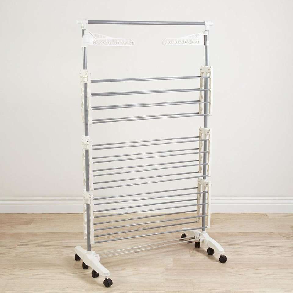 Séchoir à linge pliable à 3 niveaux avec roulettes, support de séchage portable