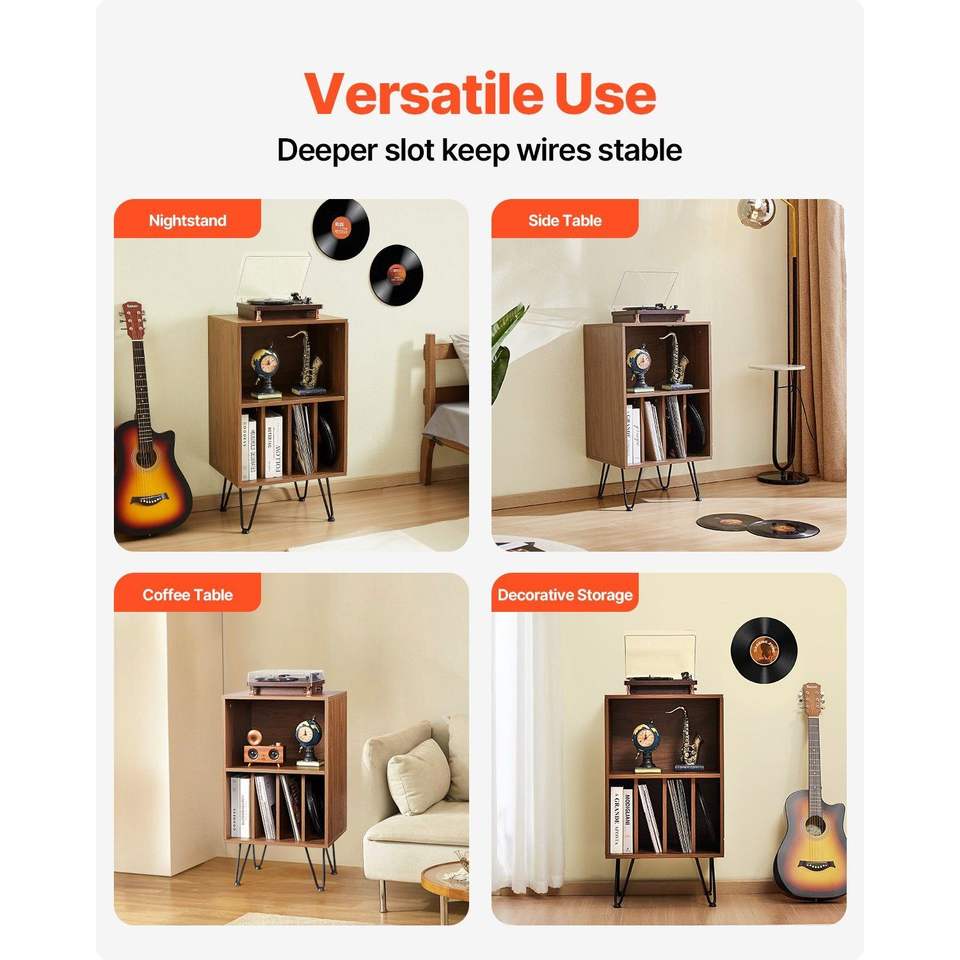 Support de tourne-disque à 3 niveaux avec rangement pour disques vinyles, meuble de rangement pour disques vinyles pour chambre à coucher et salon, pieds en métal, support pour lecteur de disques