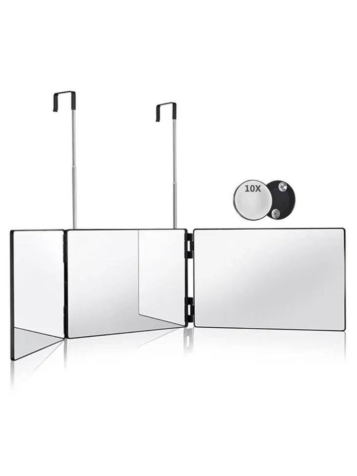 Miroir de coiffure pliable à trois volets en verre carré LM avec éclairage LED 360°, hauteur réglable, design pliable, portable