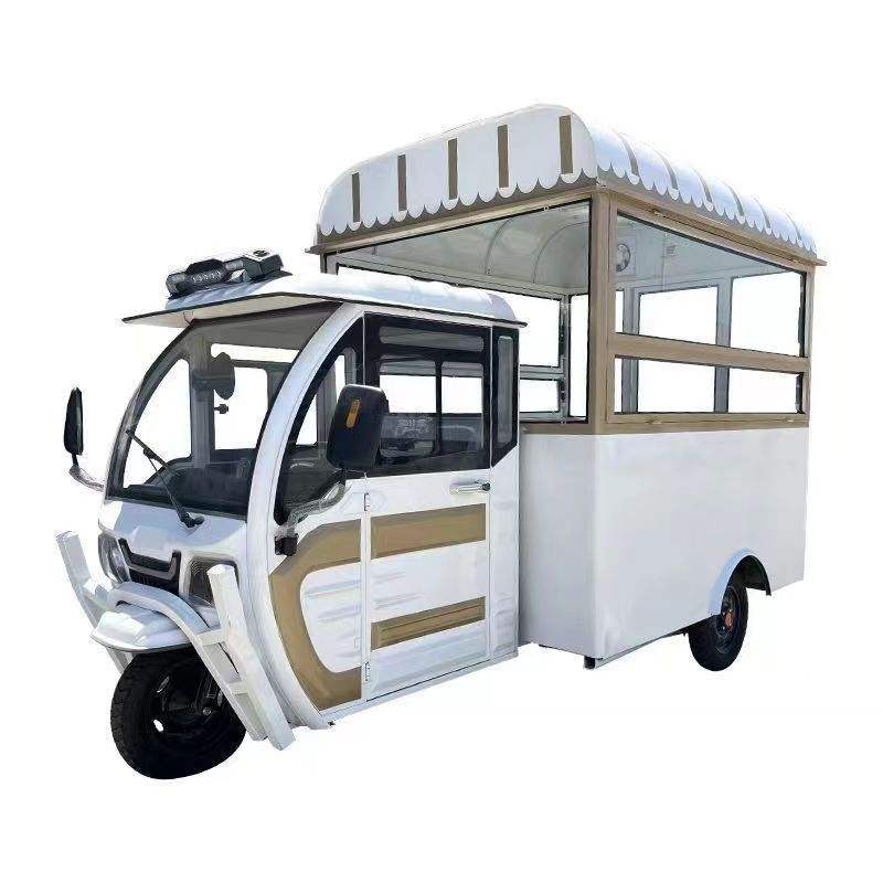 Camion de nourriture mobile à 3 roues en acier inoxydable, remorque à café avec friteuse automatique, service de restauration rapide et de collations, résistant à la rouille