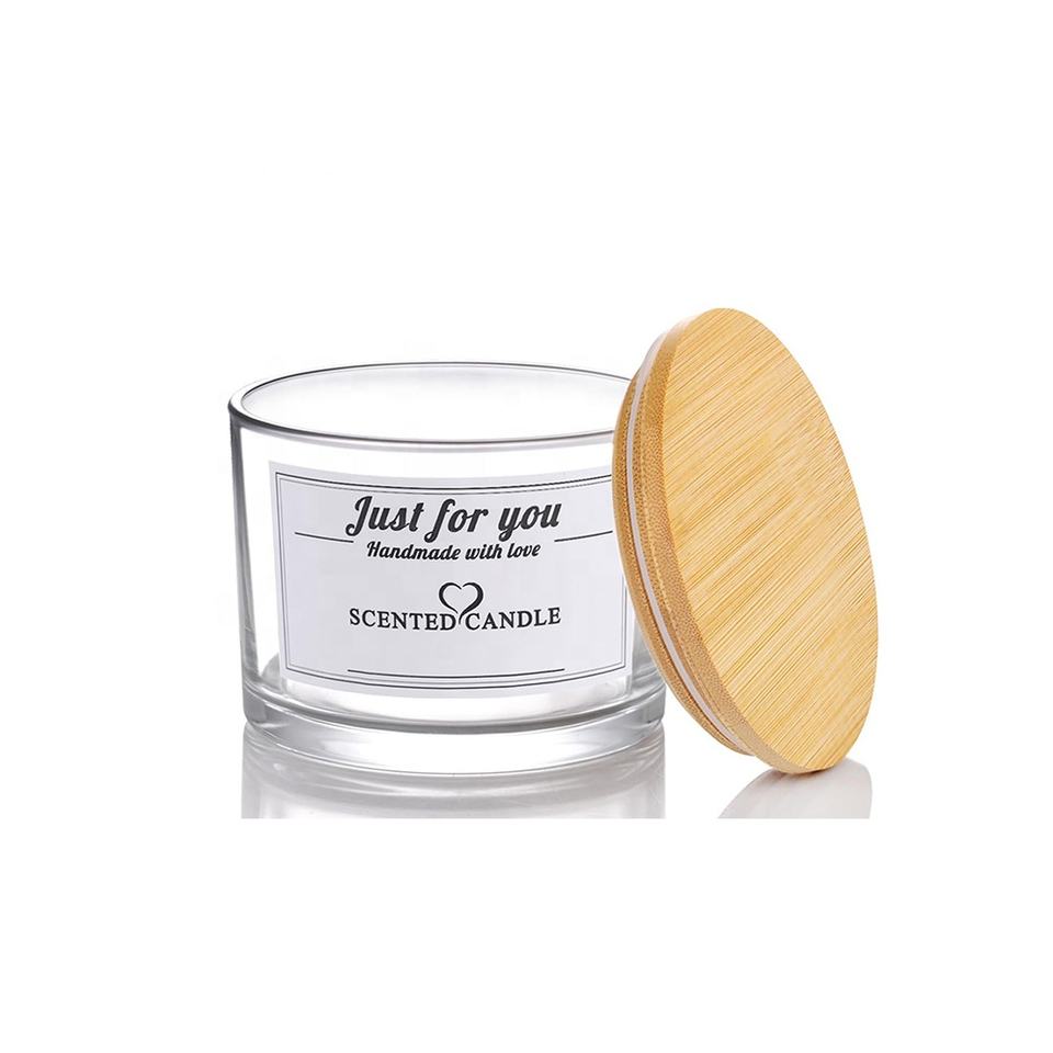 Récipients pour bougies à 3 mèches avec couvercle en bambou Grand pot à bougie en verre transparent à large bouche