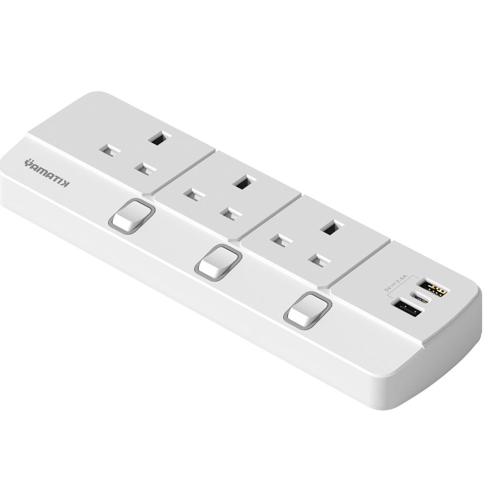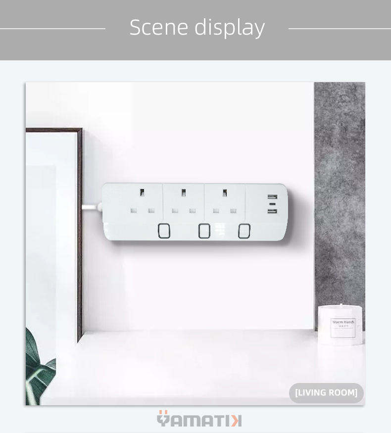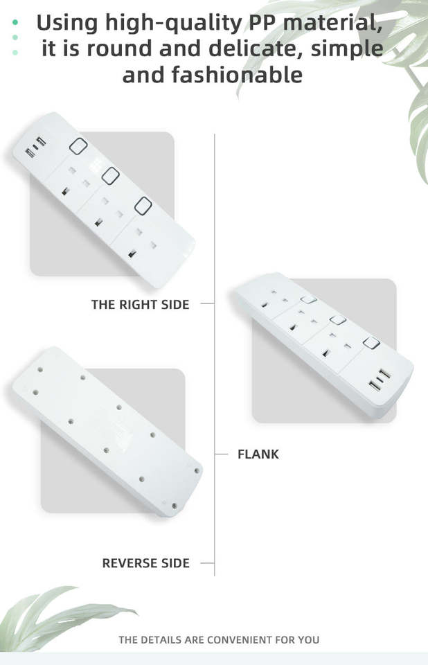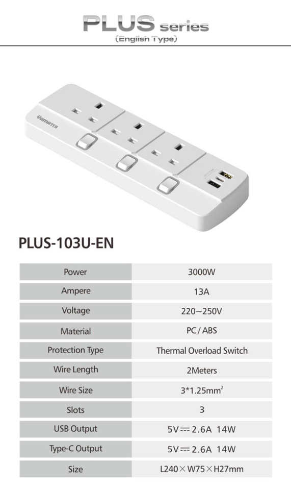 3 prises largement espacées, 2 USB, 1 Type-C, charge rapide, interrupteur de surcharge, personnalisation standard, série PLUS, prise de table