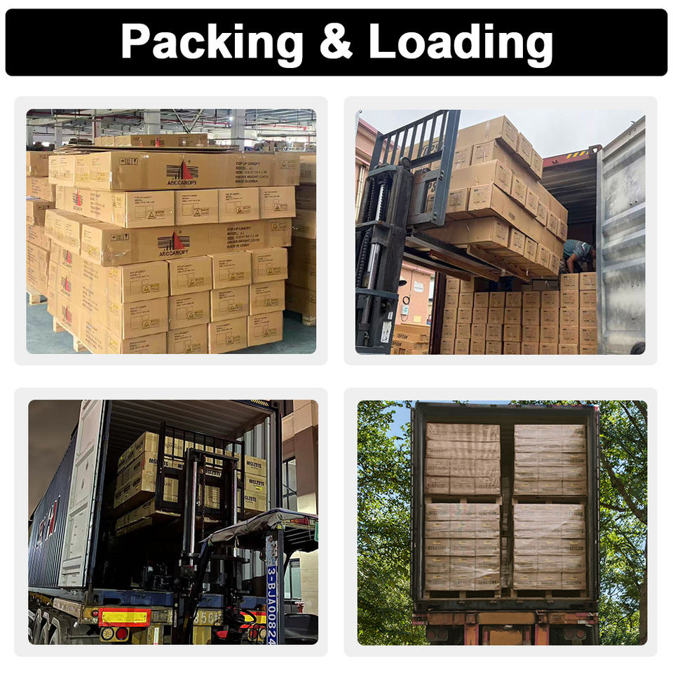 Liste de colisage:Cadre en acier pour box + toit + sac à roulettes + 4 sacs de poids + 4 cordes et 4 piquets