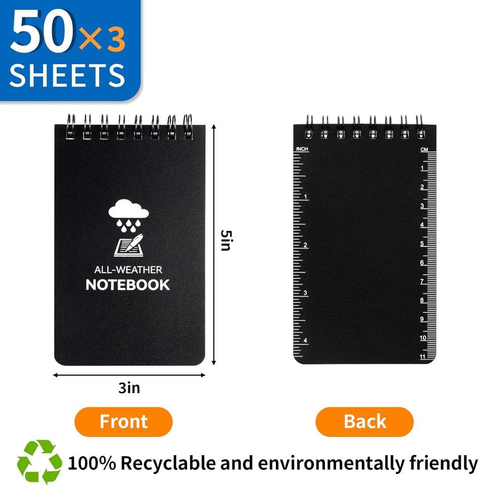Bloc-notes de poche tout temps 3 x 5, papier pierre, mini bloc-notes spiralé résistant aux intempéries, bloc-notes de police pour extérieur, maison, bureau, école