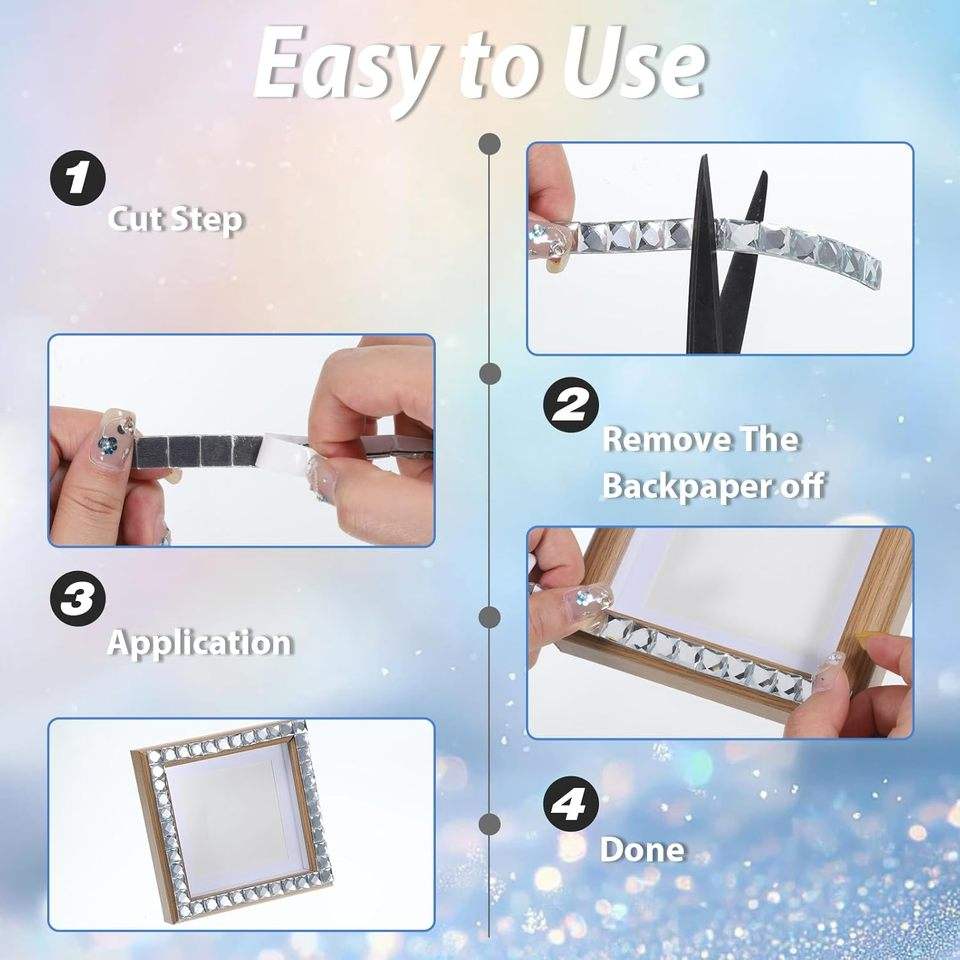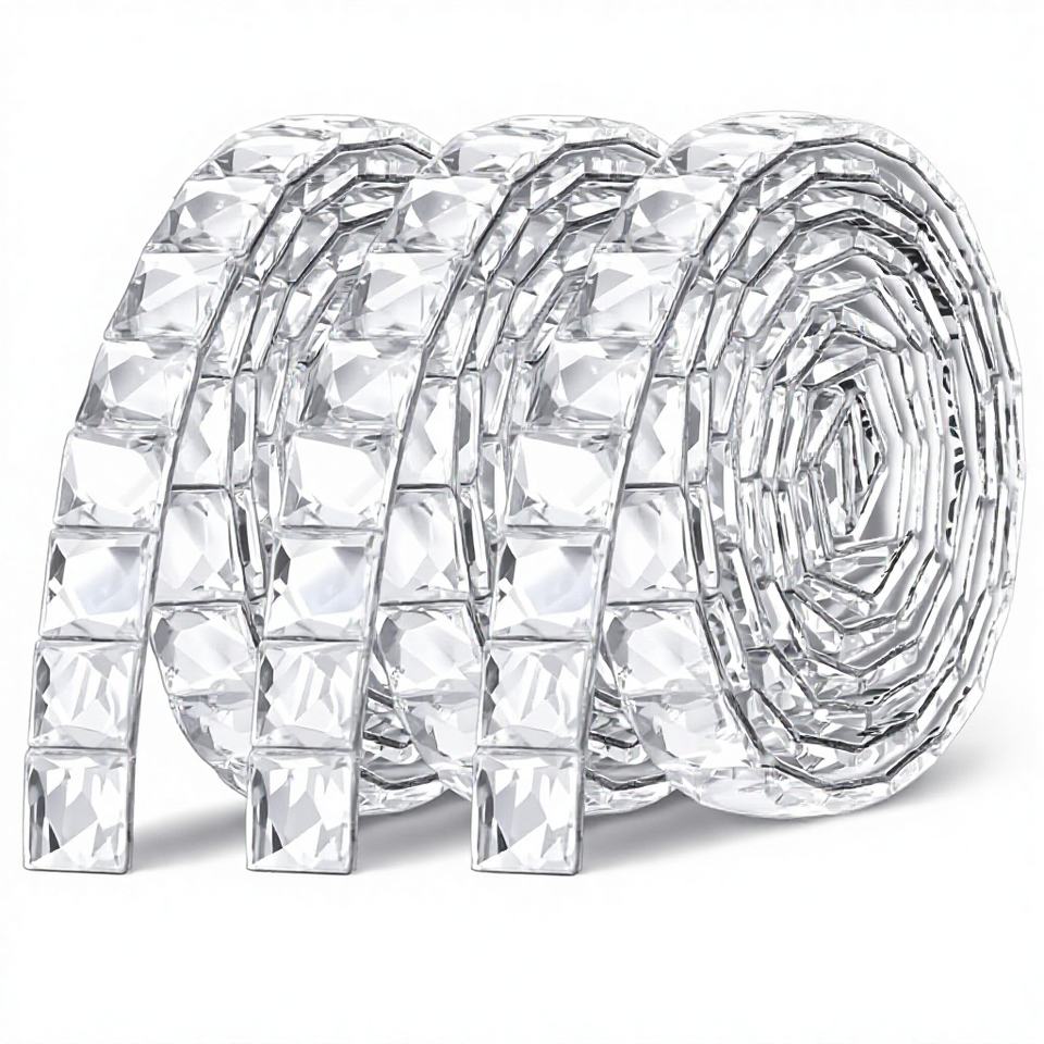 Rubans carrés en strass brillants de 3 yards, ruban en cristal de verre auto-adhésif, artisanat DIY, ruban adhésif en strass de 0,39 pouce de large, blanc