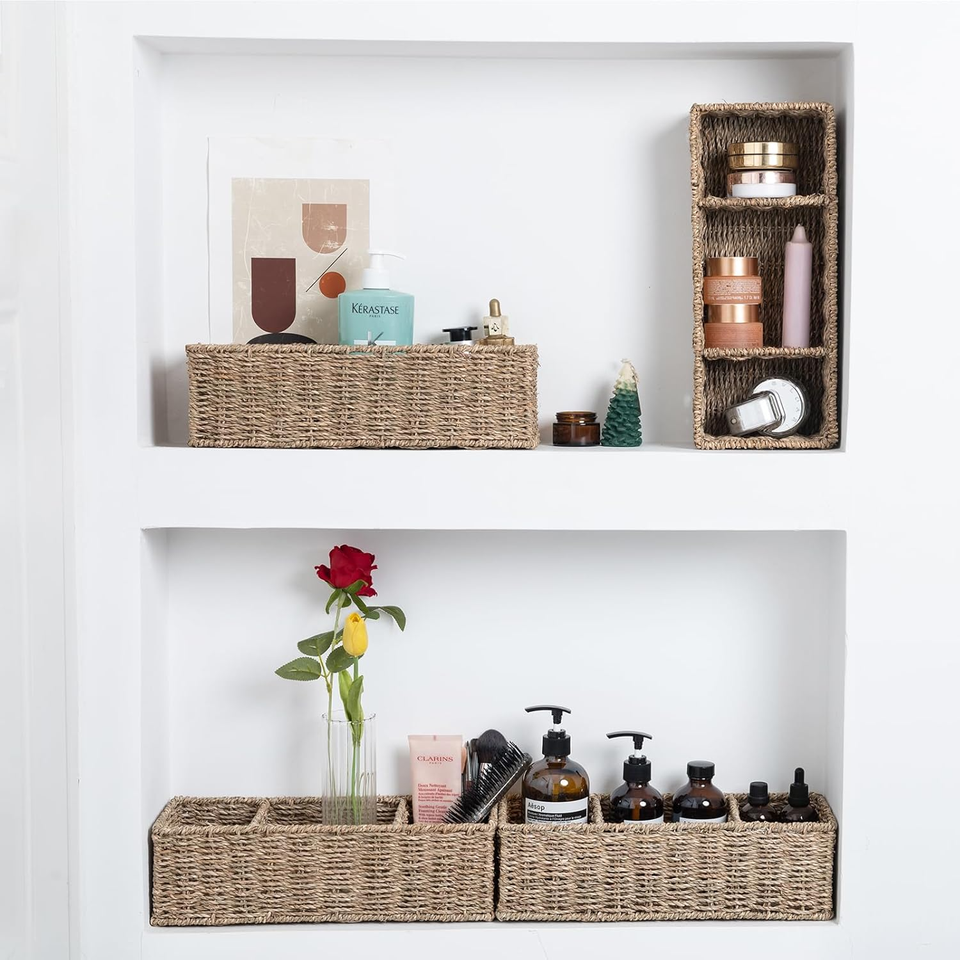 Product Name:3-compartment seagrass basket for bathroom