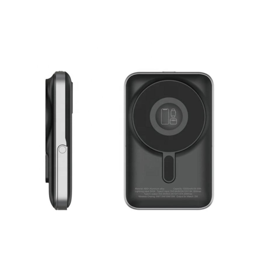 Batterie externe magnétique 3 en 1 10000mAh avec support métallique pliable pour iPhone, écouteurs iWatch