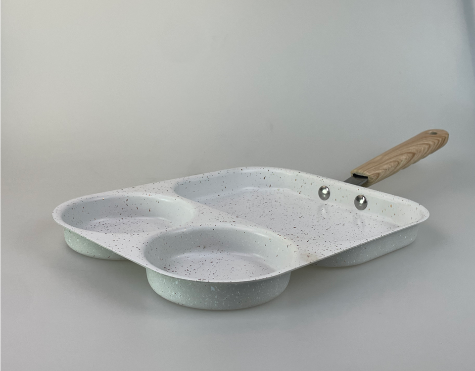 Poêle à petit déjeuner 3 en 1 poêle à hamburger poêle à frire revêtement antiadhésif poêle à frire bakélite avec grain de bois doux