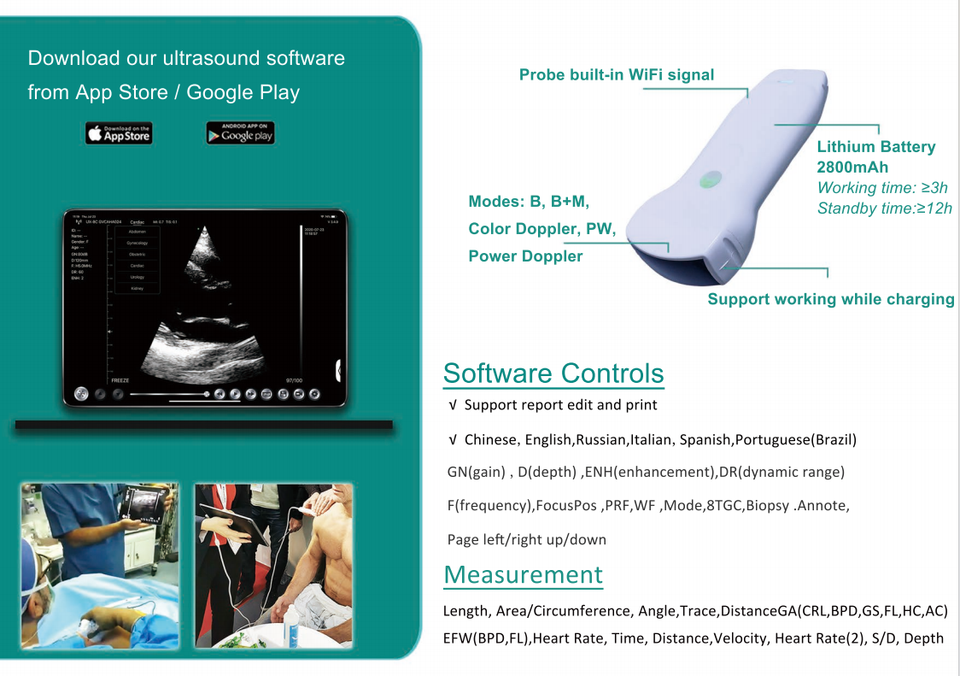 Nom du produit:3 dans 1 scanner sans fil cardiaque linéaire convexe d'ultrason