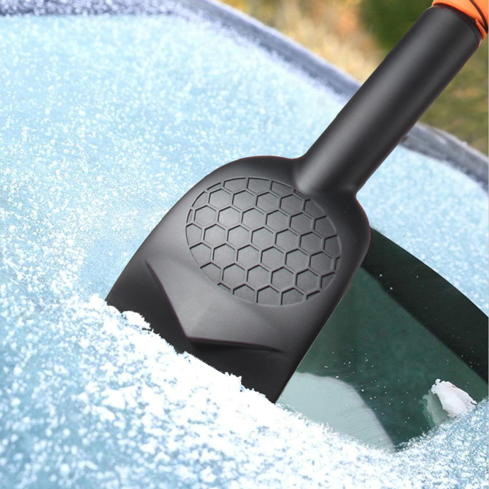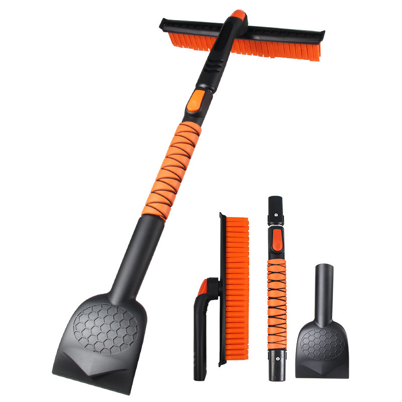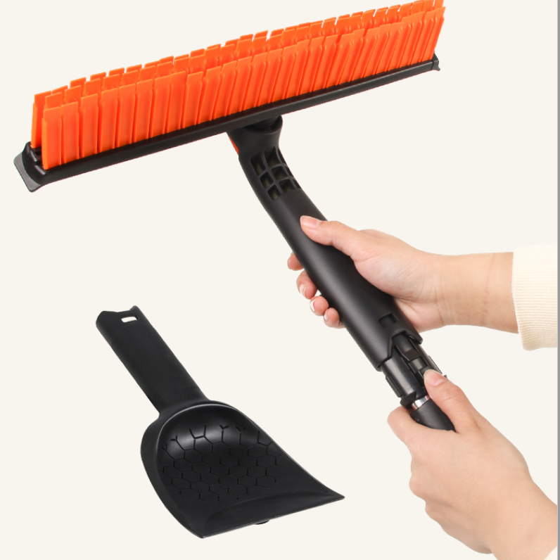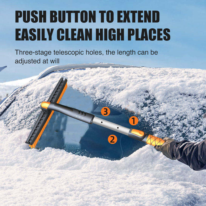Pelle extensible 3-en-1 avec grattoir ergonomique en mousse, brosse pivotante à poils en silicone et raclette pour pare-brise de voiture