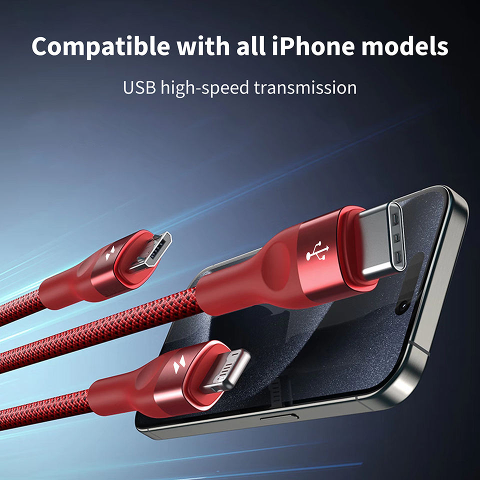 Câble de charge rapide 3-en-1 universel pour iPhone 5-17, Android, Type C, iOS, Micro USB – Personnalisable OEM