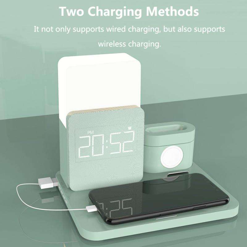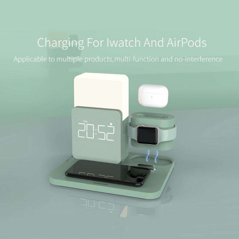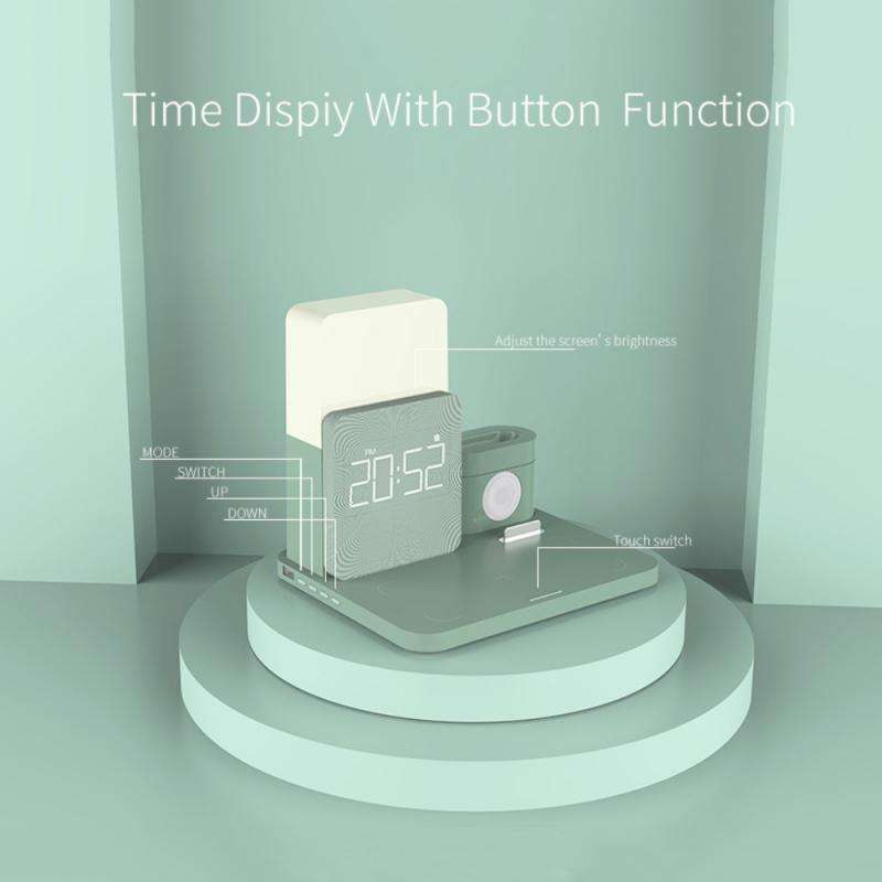 Chargeur sans fil 3 en 1, veilleuse LED avec alarme numérique, charge rapide, pour iPhone 12 Pro Max Mini AirPods iWatch