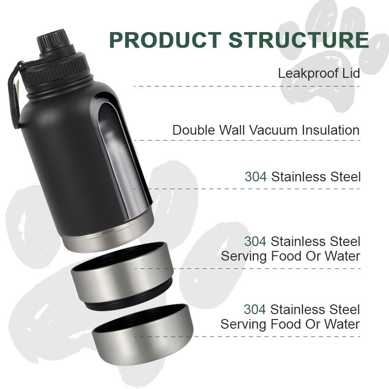 3 in 1 Automatic Foldable Stainless Steel Dog Water Bottle with Travel Bowl Portable Insulated Flask Custom Logo 1000ml 32oz